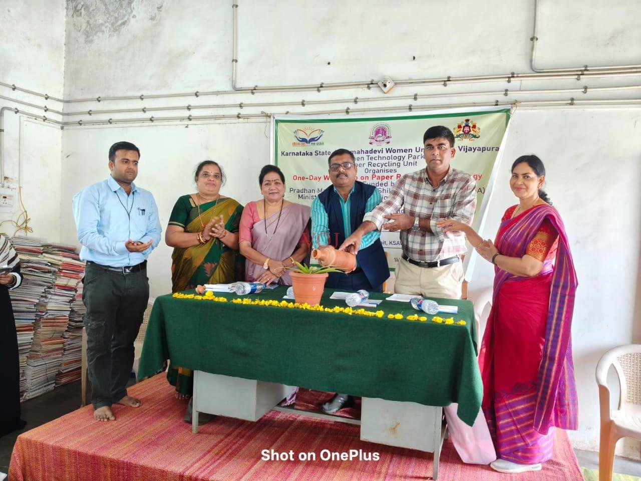ವಿಜಯಪುರದ ಕರ್ನಾಟಕ ರಾಜ್ಯ ಅಕ್ಕಮಹಾದೇವಿ ಮಹಿಳಾ ವಿಶ್ವವಿದ್ಯಾನಿಲಯದ ಪೇಪರ್ ಮರು ಉತ್ಪಾದನಾ ಘಟಕದಿಂದ ಪ್ರಧಾನ ಮಂತ್ರಿ ರಾಷ್ಟ್ರೀಯ ಉಚ್ಚತರ ಅಭಿಯಾನ ಹಾಗೂ ರಾಜ್ಯ ಉನ್ನತ ಶಿಕ್ಷಣ ಪರಿಷತ್ತಿನ ಅನುದಾನದಡಿ ಪೇಪರ್ ಪುನರುತ್ಪಾದನಾ ತಂತ್ರಜ್ಞಾನ ಕುರಿತು ಮಂಗಳವಾರ ಏರ್ಪಡಿಸಿದ್ದ ಕಾರ್ಯಾಗಾರವನ್ನು ಕುಲಸಚಿವ ಶಂಕರಗೌಡ ಸೋಮನಾಳ ಉದ್ಘಾಟಿಸಿದರು.