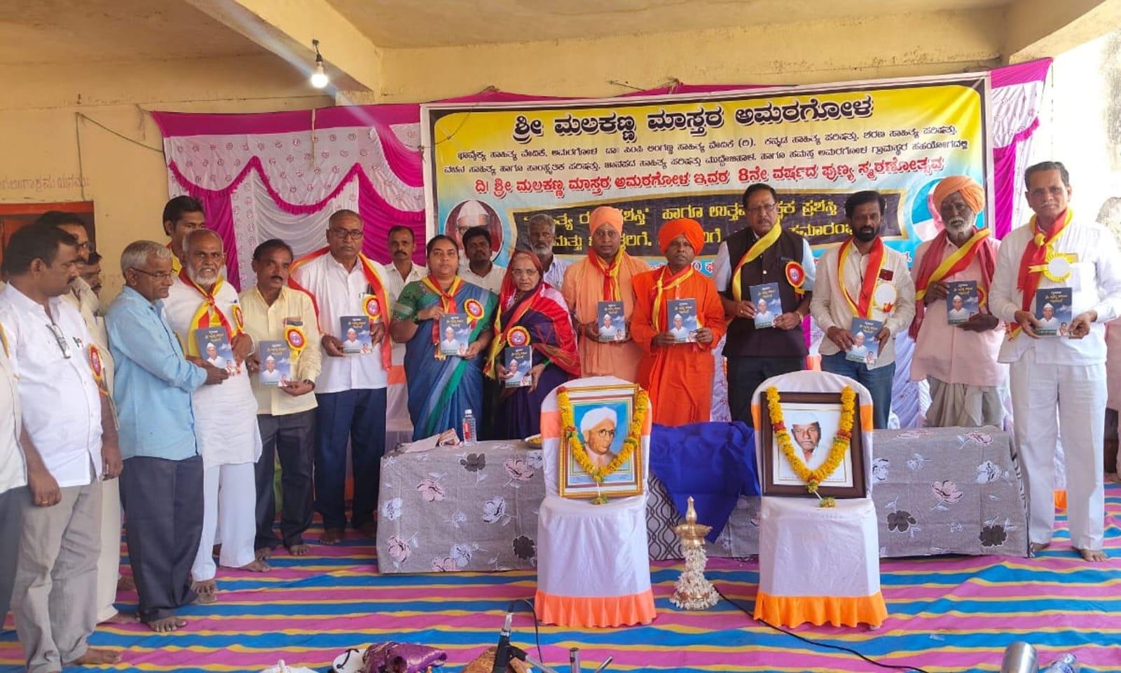 ಮುದ್ದೇಬಿಹಾಳ ತಾಲೂಕು ಅಮರಗೋಳದ ಶ್ರೀ ನಾಗಲಿಂಗೇಶ್ವರ ದೇವಸ್ಥಾನದಲ್ಲಿ ಭಾನುವಾರ ಏರ್ಪಡಿಸಿದ್ದ ಭಾಮಿನಿ ಷಟ್ಪದಿ ಕವಿ ಮಲಕಣ್ಣ ಮಾಸ್ತರ ಅಮರಗೋಳ (ಮಲಿಕಸಾಬ ನದಾಫ) ಅವರ ೮ನೇ ಸ್ಮರಣೋತ್ಸವ, ಕೃತಿ ಬಿಡುಗಡೆ, ಪ್ರಶಸ್ತಿ ಪ್ರದಾನ, ನಿವೃತ್ತರಿಗೆ, ಸಾಧಕರಿಗೆ ಸನ್ಮಾನ ಸಮಾರಂಭದ ದಿವ್ಯ ಸಾನಿಧ್ಯ ವಹಿಸಿ ಅವರು ಆಶಿರ್ವಚನ ನೀಡಿದರು.