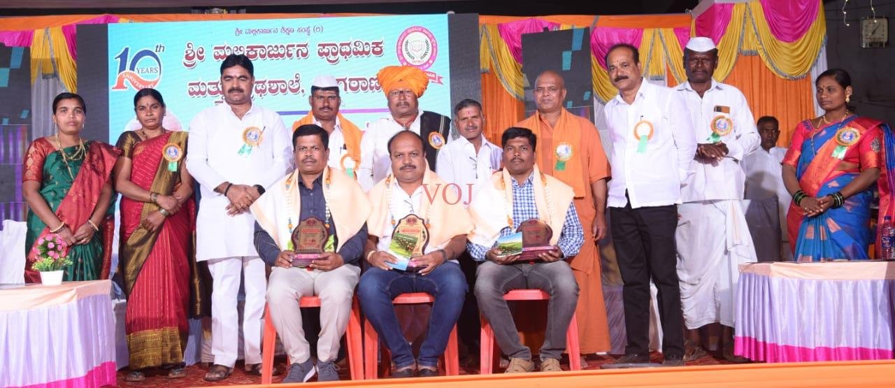 ವಿಜಯಪುರ: ತಾಲೂಕಿನ ನಾಗಠಾಣ ಗ್ರಾಮದಲ್ಲಿ ಜರುಗಿದ ಶ್ರೀ ಮಲ್ಲಿಕಾರ್ಜುನ ಪ್ರಾಥಮಿಕ ಮತ್ತು ಪ್ರೌಢ ಶಾಲೆಯ ದಶಮಾನೋತ್ಸವ ಹಾಗೂ ಸಾಂಸ್ಕೃತಿಕ ಸಂಭ್ರಮ ಕಾರ್ಯಕ್ರಮದಲ್ಲಿ ಜಿಲ್ಲಾ ಕಾರ್ಯನಿರತ ಪತ್ರಕರ್ತರ ಸಂಘಕ್ಕೆ ನೂತನವಾಗಿ ಅಧ್ಯಕ್ಷರಾಗಿ ಆಯ್ಕೆಯಾದ ಅಶೋಕ ಯಡಳ್ಳಿ, ಉಪಾಧ್ಯಕ್ಷರಾಗಿ ಆಯ್ಕೆಯಾದ ಶಶಿಕಾಂತ ಮೆಂಡೆಗಾರ ಅವರನ್ನು ಹಾಗೂ ಕರುನಾಡು ಪ್ರಭ ಪತ್ರಿಕೆಯ ಸಂಸ್ಥಾಪಕರಾದ ಶರಣು ಮಸಳಿ ಅವರನ್ನು ಶಾಲೆಯ ವತಿಯಿಂದ ಸನ್ಮಾನಿಸಲಾಯಿತು.