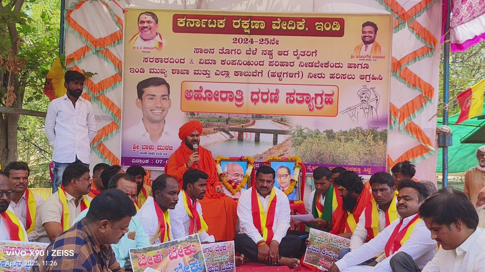 ಇಂಡಿ ಪಟ್ಟಣದ ಬಸವೇಶ್ವರ ವೃತ್ತದಲ್ಲಿ ತೊಗರಿ ಬೆಳೆಗೆ ಪರಿಹಾರ ಆಗ್ರಹಿಸಿ ಅಹೋ ರಾತ್ರಿ ನಡೆದ ಧರಣ ಸಭೆಯಲ್ಲಿ ಶಿರಶ್ಯಾಡ ಪೂಜ್ಯ ಮುರಗೇಂದ್ರ ಶಿವಾಚಾರ್ಯರರು ಮಾತನಾಡಿದರು.