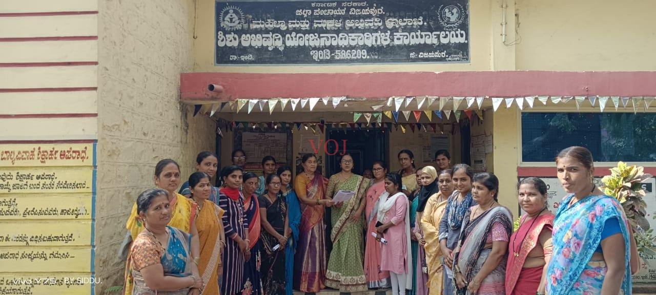 ಇಂಡಿಯ ಮಹಿಳಾ ಮತ್ತು ಮಕ್ಕಳ ಕಲ್ಯಾಣ ಅಧಿಕಾರಿ ಇವರಿಗೆ ಅಂಗನವಾಡಿ ಕಾರ್ಯಕರ್ತೇಯರಿಂದ ಮನವಿ ಸಲ್ಲಿಸಿದರು.
