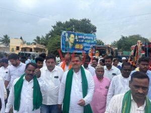 ಇದಕ್ಕೂ ಮುನ್ನ ಬಿದರಕುಂದಿಯ ಸಂಗಮೇಶ್ವರ ದೇವಸ್ಥಾನದಲ್ಲಿ ಪೂಜೆ ಸಲ್ಲಿಸಿ ರೈತರು, ಮುಖಂಡರ ಸಭೆ ನಡೆಸಿ ಚರ್ಚಿಸಲಾಯಿತು. ಅಲ್ಲಿಂದ ಚಕ್ಕಡಿ, ಟ್ರಾö್ಯಕ್ಟರ್ ರ‍್ಯಾಲಿ ಮೂಲಕ ಪಟ್ಟಣ ಪ್ರವೇಶಿಸಿ ರೈತರಿಗೆ ನ್ಯಾಯದ ಘೋಷಣೆ ಹಾಕುತ್ತ ಪ್ರಮುಖ ರಸ್ತೆಗಳಲ್ಲಿ ಸಂಚರಿಸಲಾಯಿತು. ಸಿಪಿಐ ಮಲ್ಲಿಕಾರ್ಜುನ ತುಳಸೀಗೇರಿ ನೇತೃತ್ವದಲ್ಲಿ ಪೊಲೀಸರು ಬಂದೋಬಸ್ತ್ ಒದಗಿಸಿದ್ದರು.