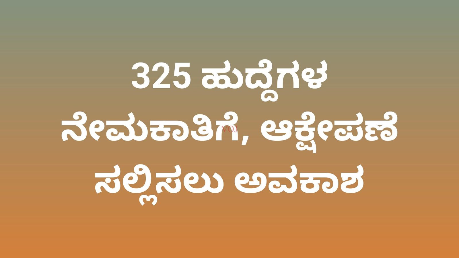 325 ಹುದ್ದೆಗಳ ನೇಮಕಾತಿಗೆ, ಆಕ್ಷೇಪಣೆ ಸಲ್ಲಿಸಲು ಅವಕಾಶ