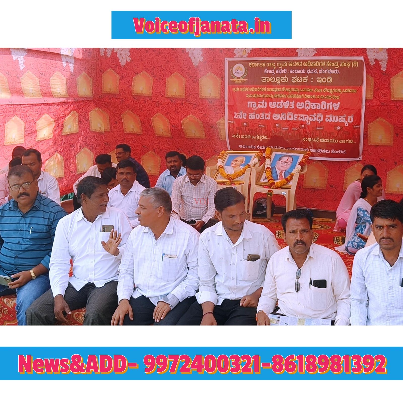 ಇಂಡಿ: ಪಟ್ಟಣದ ಮಿನಿ ವಿಧಾನಸೌಧ ಎದುರು ಗ್ರಾಮ ಆಡಳಿತ ಅಧಿಕಾರಿಗಳ ಮುಷ್ಕರ ನಾಲ್ಕನೆ ದಿನ ಮುಂದುವರೆದಿರುವುದು.