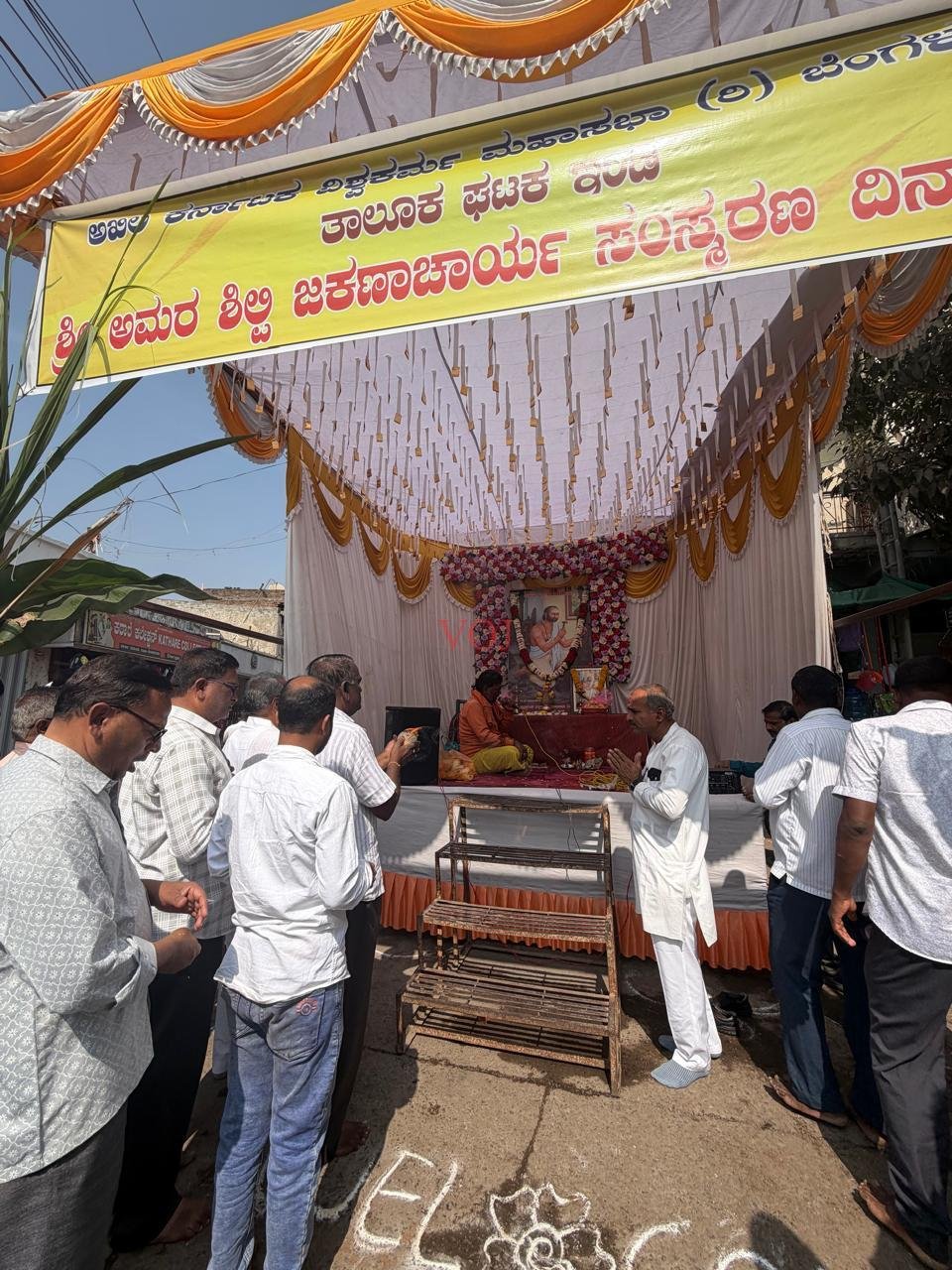ವಿಶ್ವಕರ್ಮ ಸಮಾಜದ ತಾಲೂಕಾ ಅಧ್ಯಕ್ಷ ರಮೇಶ ಪೊದ್ದಾರ ಮಾತನಾಡಿ ಶಿಲ್ಪಕಲೆ ಎನ್ನುವದು ಅತ್ಯಂತ ನಾಜುಕಾದ ಕೆತ್ತನೆಯ ಕಲೆ, ಇಂತಹ ವಿಶೇಷ ಕಲೆಯ ಮೂಲಕ ಅಮರಶಿಲ್ಪಿ ಜಕಣಾಚಾರಿ ಅವರು ನಾಡಿಗೆ ಅಪಾರ ಕೊಡುಗೆ ನೀಡಿದ್ದಾರೆ ಎಂದರು. ಸರಾಫ ಸಂಘದ ಅಧ್ಯಕ್ಷ ಸೋಮಶೇಖರ ಬಿರಾದಾರ ಮತ್ತು ಶಿಲ್ಪಿ ಅಖಂಡಪ್ಪ ಪತ್ತಾರ ಇವರಿಗೆ ವಿಶ್ವಕರ್ಮ ಸಮಿತಿ ವತಿಯಿಂದ ಸನ್ಮಾನಿಸಲಾಯಿತು.