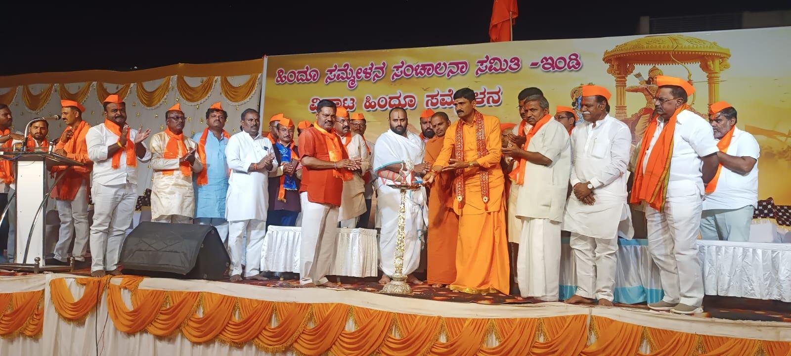 ನಗರದ ಸಿಂದಗಿ ರಸ್ತೆಯ ಮಂಗಲ ಕಾರ್ಯಾಲಯ ಪಕ್ಕದ ಆವರಣದಲ್ಲಿ ಹಿಂದೂ ಸಮ್ಮೇಳನ ಸಂಚಲನಾ ಸಮೀತಿ-ಇಂಡಿ ನಗರ ವತಿಯಿಂದ ಹಮ್ಮಿಕೊಂಡಿದ್ದ ವಿರಾಟ ಹಿಂದೂ ಸಮ್ಮೇಳನ ಕಾರ್ಯಕ್ರಮದಲ್ಲಿ ಮಾತನಾಡಿದರು.