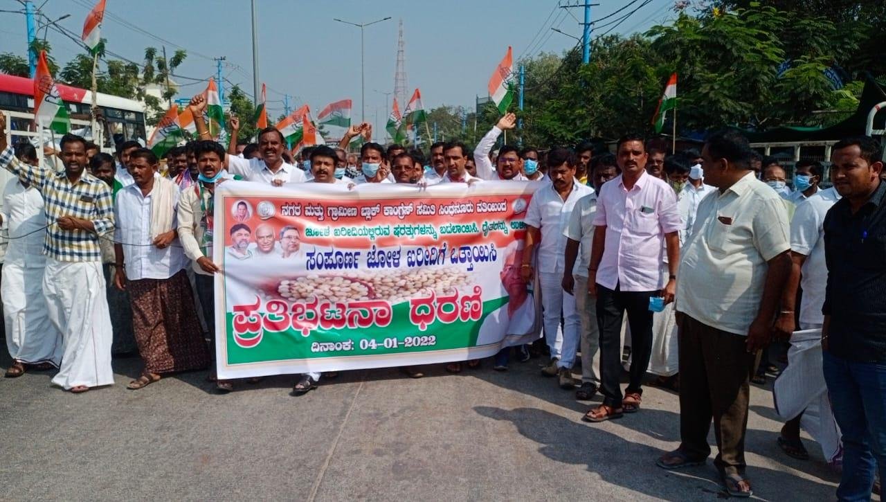 ಸಿಂಧನೂರು: ರಾಯಚೂರ ಜಿಲ್ಲೆಯ ಸಿಂಧನೂರು ನಗರದ ಮಾಜಿ ಶಾಸಕ ಹಂಪನಗೌಡ ಬಾದರ್ಲಿ ಅವರ ನಿವಾಸದಿಂದ ನಗರದ ಕನಕದಾಸ ವೃತ್ತ, ಸರ್ಕಾರಿ ಆಸ್ಪತ್ರೆ ಮುಂಬಾಗ, ವಾಲ್ಮೀಕಿ ವೃತ್ತದವರೆಗೆ ನಗರ ಮತ್ತು ಗ್ರಾಮೀಣ ಬ್ಲಾಕ್ ಕಾಂಗ್ರೆಸ್ ಸಮಿತಿ ವತಿಯಿಂದ “ಜೋಳ ಖರೀದಿಯಲ್ಲಿರುವ ಷರತ್ತುಗಳನ್ನು ಬದಲಿಸಿ ರೈತರನ್ನು ಉಳಿಸಿ” ಎಂಬ ಘೋಷ ವಾಕ್ಯದಡಿ ಬೃಹತ್ ಪ್ರತಿಭಟನಾ ಮೆರವಣಿಗೆ ನಡೆಸಿದರು.