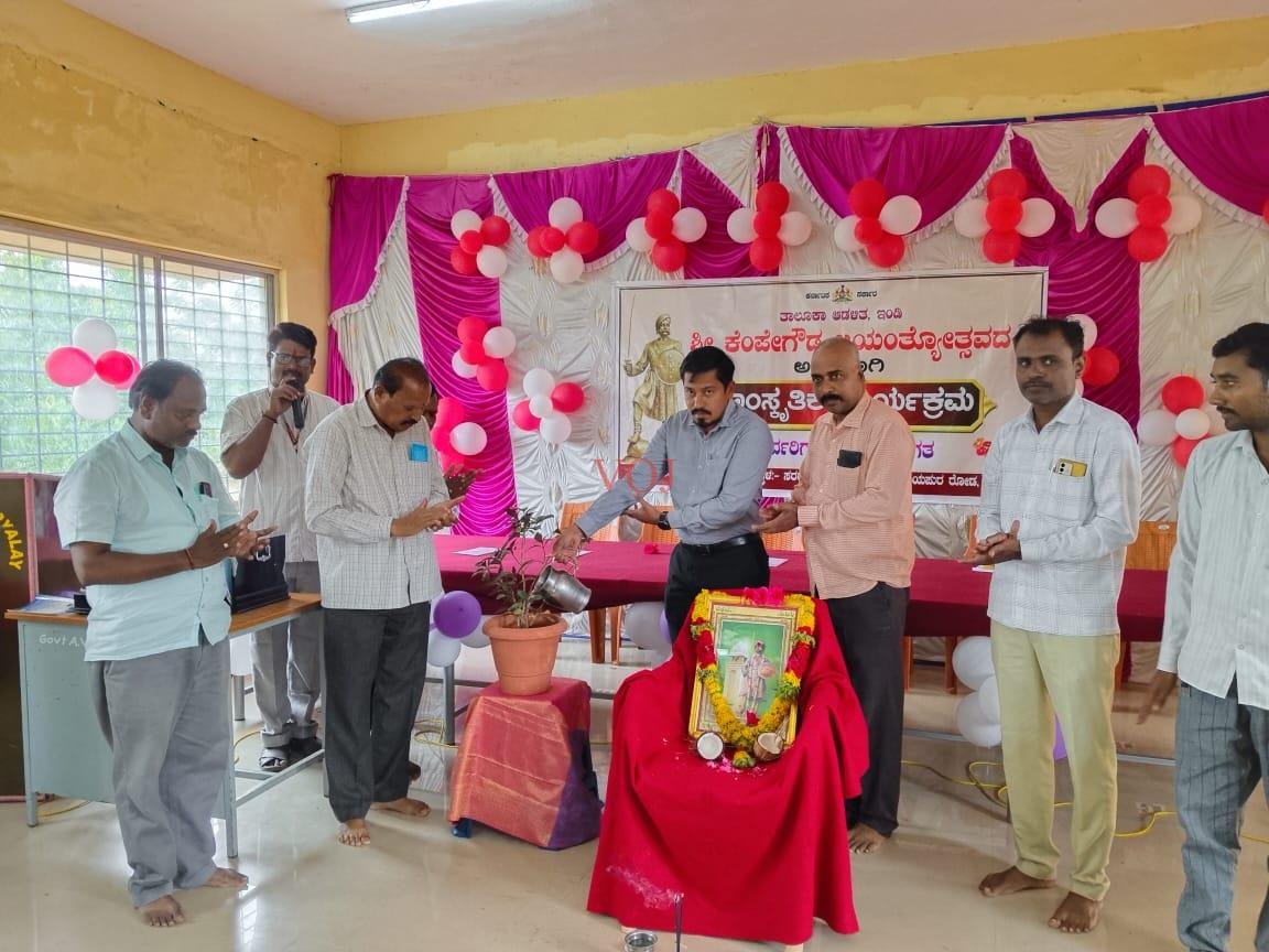 ಪಟ್ಟಣದ ವಿಜಯಪುರ ರಸ್ತೆಯಲ್ಲಿರುವ ಆದರ್ಶ ಶಾಲೆಯಲ್ಲಿ, ತಾಲ್ಲೂಕು ಆಡಳಿತ ವತಿಯಿಂದ ಆಯೋಜಿಸಿದ್ದ ನಾಡುಪ್ರಭು ಕೆಂಪೇಗೌಡ ಜಯಂತಿ ನಿಮತ್ಯವಾಗಿ ಭಾವಚಿತ್ರಕ್ಕೆ ಪುಷ್ಪಾರ್ಚಾಣೆ ಮಾಡಿ ಮಾತನಾಡಿದರು.