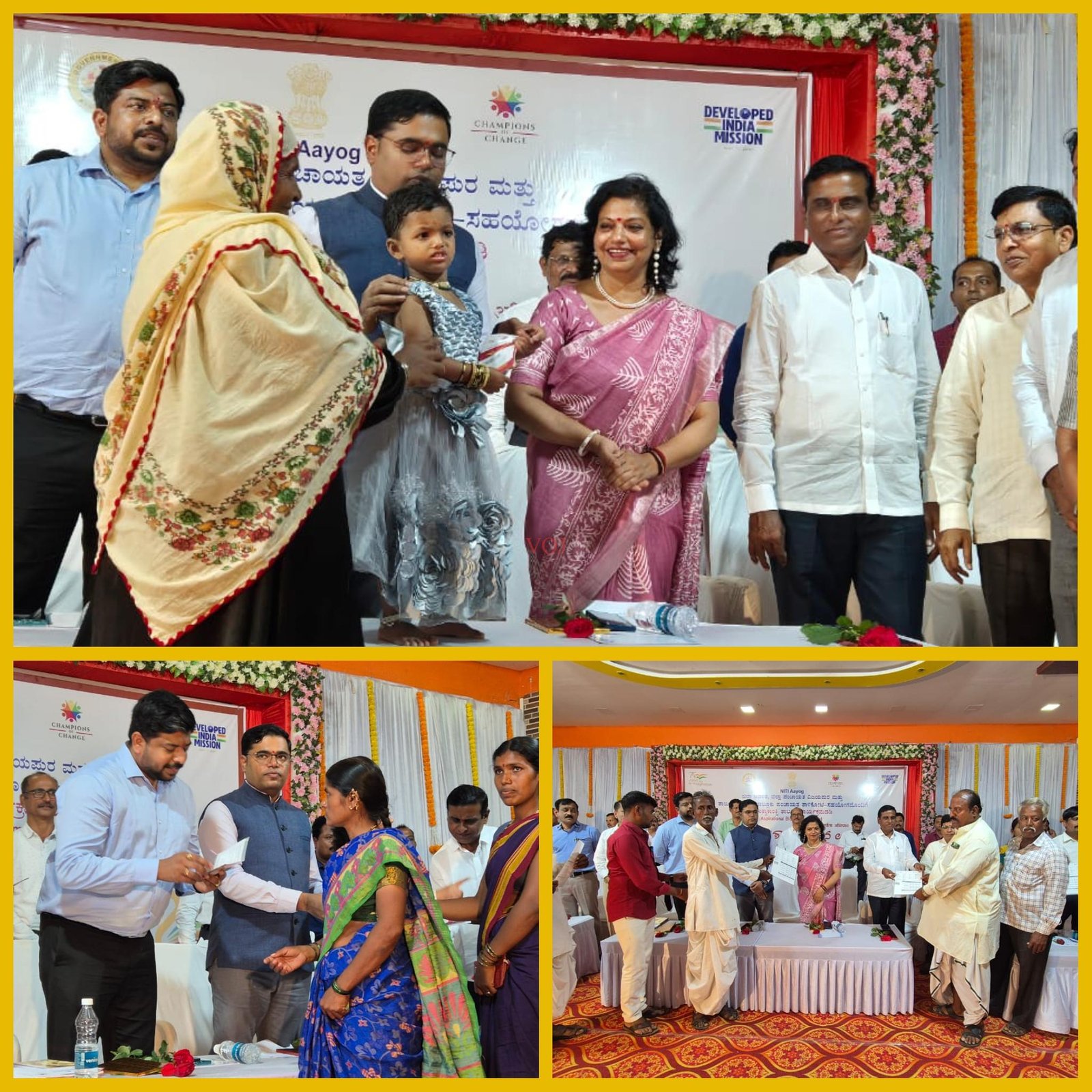 ಕಾರ್ಯಕ್ರಮದಲ್ಲಿ 10 ಜನ ಗರ್ಭಿಣಿ ಮಹಿಳೆಯರಿಗೆ ತಾಯಿ ಕಾರ್ಡ್ , 5 ಜನ ಮೇಲ್ವಿಚಾರಕರಿಗೆ ಪೆÇೀಷಣ್ ಟ್ರ್ಯಾಕರ್ ಮೊಬೈಲ್, 5 ಫಲಾನುಭವಿಗಳಿಗೆ ಸುಕನ್ಯಾ ಸಮೃದ್ದಿ ಯೋಜನೆಯ ಪಾಸ್ ಬುಕ್ ಹಾಗೂ 20 ಜನ ರೈತರಿಗೆ ಮಣ್ಣಿನ ಆರೋಗ್ಯ ಕಾರ್ಡ್ ವಿತರಣೆ ಮಾಡಲಾಯಿತು. ಇದೇ ವೇಳೆ ಗರ್ಭಿಣಿಯರಿಗೆ ಸೀಮಂತ ಕಾರ್ಯಕ್ರಮವನ್ನೂ ಸಹ ನೆರವೇರಿಸಲಾಯಿತು.