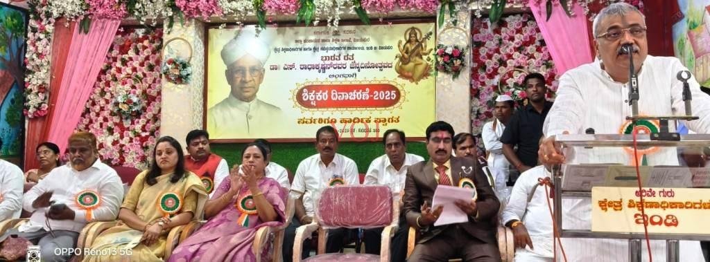 ಇಂಡಿ ಪಟ್ಟಣದ ಗುರುಭವನದಲ್ಲಿ ಆಯೋಜಿಸಿದ ಶಿಕ್ಷಕ ದಿನಾಚರಣೆಯಲ್ಲಿ ಶಾಸಕ ಯಶವಂತರಾಯಗೌಡ ಪಾಟೀಲರು ಮಾತನಾಡಿದರು.