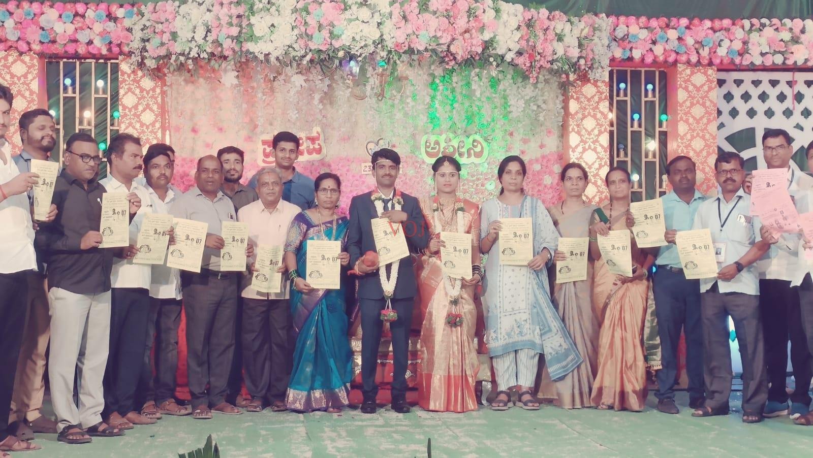 ಸಮಿತಿಯ ಮತದಾರರ ಜಾಗೃತಿ ಕರಪತ್ರಗಳನ್ನು ವಧು-ವರರಿಗೆ ನೀಡಿ ಮದುವೆಗೆ ಆಗಮಿಸಿದ ಎಲ್ಲ ಜನರಿಗೆ ಮೇ 07, 2024 ರಂದು ಜರುಗುವ ಮತದಾನ ದಿನದಂದು ಪ್ರತಿಜಾÐವಂತ ಮತದಾರರು ತಪ್ಪದೇ ಕಡ್ಡಾಯವಾಗಿ ತಮ್ಮ- ತಮ್ಮ ಮತಕೇಂದ್ರಗಳಿಗೆ ತೆರಳಿ ಮತದಾನ