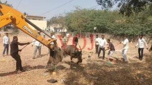 ಮುದ್ದೇಬಿಹಾಳ: ಜೆಸಿಬಿ ಬಳಸಿ ಕಾರ್ಯಾಚರಣೆ ಮೂಲಕ ಪುಂಡಾಟ ನಡೆಸುತ್ತಿದ್ದ ಮದವೇರಿದ ಎಮ್ಮೆ ಸೆರೆ ಹಿಡಿಯಲಾಯಿತು.