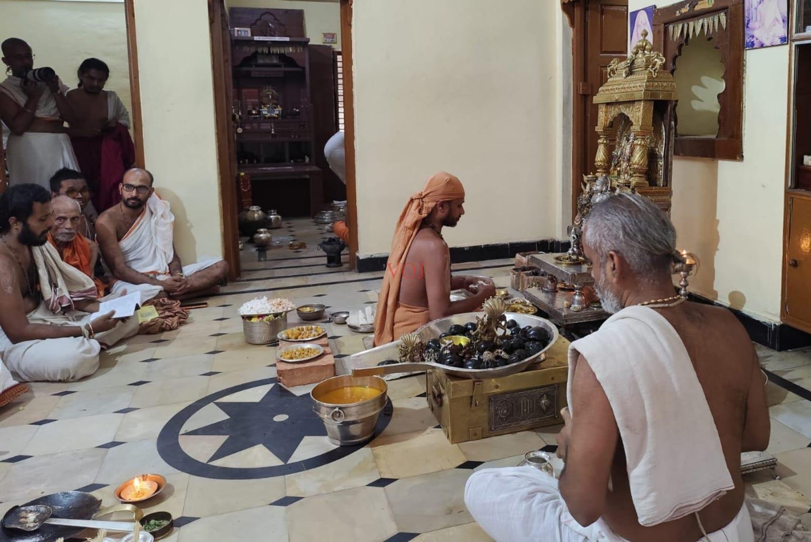 ಮುದ್ದೇಬಿಹಾಳ: ಶ್ರೀ ೧೦೦೮ ಸತ್ಯಾತ್ಮತೀರ್ಥ ಶ್ರೀಪಾದಂಗಳವರು ವಿಜಯೇಂದ್ರ ಪಾಟೀಲ ಅವರ ನಿವಾಸದಲ್ಲಿ ಮೂಲ ರಾಮದೇವರ ಪೂಜೆ ನೆರವೇರಿಸಿದರು.