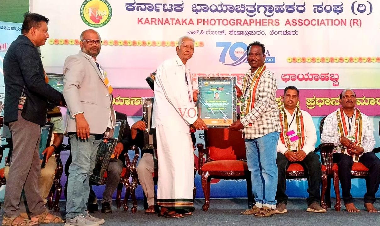 ಮುದ್ದೇಬಿಹಾಳ: ತಾಲ್ಲೂಕಿನ ತಾರನಾಳ ಗ್ರಾಮದ ರಮಜಾನ್ ಅಲ್ಲಾಸಾ ನದಾಪ್ ಅವರಿಗೆ ಎಪ್ರಿಲ್ 12 ರಂದು ಬೆಂಗಳೂರಿನ ಶೇಷಾದ್ರಿಪೂರಂ ನಲ್ಲಿ ಕರ್ನಾಟಕ ಛಾಯಾಗ್ರಾಹಕರ ಸಂಘದಿಂದ ನಡೆದ 2025ರ ಡಿಜಿ ಇಮೇಜ್ ಕಾರ್ಯಕ್ರಮದಲ್ಲಿ ಪ್ರತಿ ತಾಲ್ಲೂಕಿಗೆ ಒಬ್ಬರಂತೆ ಆಯ್ಕೆಯಾಗಿದ್ದಾರೆ ರಮಜಾನ್ ಅವರಿಗೆ ಛಾಯಾಶ್ರೀ ಪ್ರಶಸ್ತಿಯನ್ನು ಪ್ರಧಾನ ಮಾಡಲಾಯಿತು. ಮುದ್ದೇಬಿಹಾಳ ತಾಲ್ಲೂಕಿನ ಉತ್ತಮ ಛಾಯಾ ಚಿತ್ರಕಾರ ಪ್ರಶಸ್ತಿಗೆ ರಮಜಾನ್ ಅಲ್ಲಾಸಾ ನಧಾಪ್ (ರಾಜು ಢವಳಗಿ) ಅವರಿಗೆ ಛಾಯಾ ಶ್ರೀ ಪ್ರಶಸ್ತಿಯನ್ನು ನೀಡಿ ಗೌರವಿಸಲಾಯಿತು.