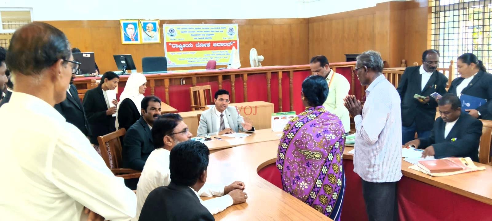 ತಾಲೂಕು ಕಾನೂನು ಸೇವಾ ಸಮಿತಿ ಅಧ್ಯಕ್ಷರು ಹಾಗೂ 5ನೇ ಹೆಚ್ಚುವರಿ ಜಿಲ್ಲಾ ಮತ್ತು ಸತ್ರ ನ್ಯಾಯಾಧೀಶರಾದ ಶ್ರೀ ಸಚಿನ್ ಕೌಸಿಕ್, ಹಿರಿಯ ಸಿವಿಲ್ ನ್ಯಾಯಾಧೀಶರಾದ ಶ್ರೀ ರವೀಂದ್ರಕುಮಾರ ಬಿ. ಕಟ್ಟಿಮನಿ ಹಾಗೂ ಸದಸ್ಯ ಕಾರ್ಯದರ್ಶಿ ಮತ್ತು ಸಿವಿಲ್ ನ್ಯಾಯಾಧೀಶರಾದ ಶ್ರೀ ರಾಮಮೂರ್ತಿ ಎನ್. ಅವರುಗಳು ರಾಜೀಸಂಧಾನ ನಡೆಸಿ ಪ್ರಕರಣಗಳನ್ನು ಇತ್ಯರ್ಥಗೊಳಿಸಿದರು.