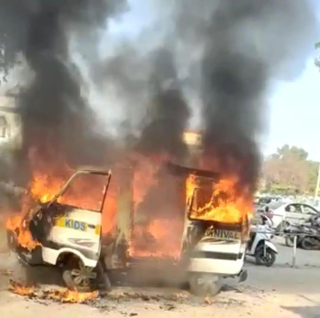 ದೇವದುರ್ಗ ತಾಲ್ಲೂಕು ಗೊಬ್ಬೂರ ಗ್ರಾಮದ ಖಾಸಗಿ ಶಾಲೆಯ ವ್ಯಾನ್ ಇದಾಗಿದ್ದು, ಬೆಂಕಿ ಅವಘಡದಿಂದ ಯಾವುದೇ ಜೀವಹಾನಿ ಸಂಭವಿಸಿಲ್ಲ. ವ್ಯಾನ್ನಿಂದ ಹೊಗೆ ಬರುತ್ತಿರುವುದನ್ನು ಗಮನಿಸಿ ಚಾಲಕ ಹಾಗೂ ಕೆಲವು ಜನರು ನೀರು ಹಾಕಿ ನಂದಿಸಲು ಯತ್ನಿಸಿದ್ದಾರೆ. ರೈಲ್ವೆ ನಿಲ್ದಾಣದೊಳಗಿನಿಂದ ಮರಳು ಹಾಗೂ ಬೆಂಕಿ ನಂದಿಸುವ ಉಪಕರಣ ತಂದು ಹಾಕಲಾಗಿತ್ತು. ಆದರೂ ಇದ್ದಕ್ಕಿದ್ದಂತೆ ಬೆಂಕಿ ಕೆನ್ನಾಲಿಗೆ ಚಾಚಿ ವ್ಯಾನ್ ಸುಟ್ಟು ಕರಕಲಾಗಿದೆ. ಅಗ್ನಿಶಾಮಕ ದಳದ ವಾಹನವು ತಲುಪುವ ಮೊದಲೇ ವಾಹನ ಉರಿದು ಹೋಗಿತ್ತು. ರೈಲ್ವೆ ನಿಲ್ದಾಣದಲ್ಲಿ ಅನ್ಯ ಕೆಲಸದ ನಿಮಿತ್ತ ಶಾಲೆಯ ಮುಖ್ಯಸ್ಥರು ಬಂದಿದ್ದರು. ಈ ವೇಳೆ ಘಟನೆ ನಡೆದಿದೆ. ‘ವ್ಯಾನ್ ಬೇರೆಯವರಿಂದ ಖರೀದಿ ಮಾಡಿದ್ದೆ. ಇನ್ನೂ ದಾಖಲೆಗಳನ್ನು ಮಾಡಿಕೊಳ್ಳುವುದು ಬಾಕಿ ಇತ್ತು. ವ್ಯಾನ್ನಲ್ಲಿ ಏನಾಯಿತು ಗೊತ್ತಿಲ್ಲ. ಒಮ್ಮೇಲೆ ಉರಿದುಹೋಗಿದೆ. ಈ ಬಗ್ಗೆ ಪೊಲೀಸ್ ಠಾಣೆಗೆ ಇನ್ನೂ ದೂರು ಸಲ್ಲಿಸಿಲ್ಲ’ ಎಂದು ಶಾಲೆಯ ಮುಖ್ಯಸ್ಥ ರವಿ ಅವರು ತಿಳಿಸಿದರು. ನಗರದ ಸೂಪರ್ ಮಾರ್ಕೆಟ್ನಲ್ಲಿ ಟಾಟಾ ಏಸ್ ವಾಹನಕ್ಕೆ ನಿಲುಗಡೆ ಮಾಡಿರುವ ಜಾಗದಲ್ಲೇ ಬೆಂಕಿ ಹೊತ್ತಿಕೊಂಡಿದ್ದ ಘಟನೆ ಕೂಡಾ ನಡೆದಿದೆ. ವಾಹನದ ಮುಂಭಾಗ ಮಾತ್ರ ಸುಟ್ಟುಹೋಗಿದೆ. ನೆರೆದಿದ್ದ ಜನರು ಕೂಡಲೇ ವಾಹನದ ಮೇಲೆ ಮಣ್ಣು ಹಾಗೂ ನೀರು ಸುರಿದು ಬೆಂಕಿ ನಂದಿಸಿದ್ದಾರೆ. ಯಾವುದೇ ಜೀವಹಾನಿಯಾಗಿಲ್ಲ. ಪ್ರಕರಣ ದಾಖಲಾಗಿಲ್ಲ.