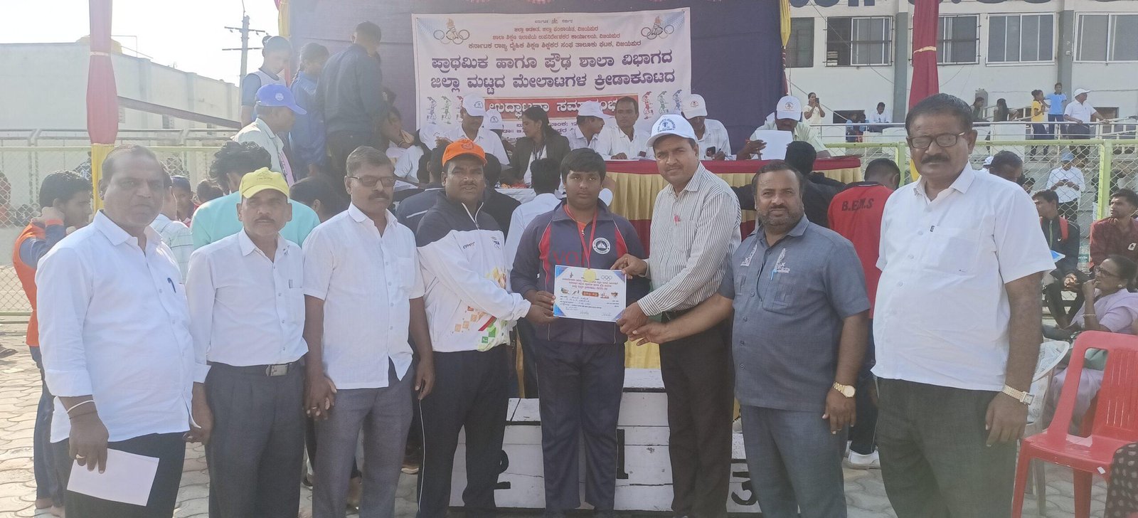 ಮುದ್ದೇಬಿಹಾಳ: ವಿಜಯಪುರ ಭಾರತ ರತ್ನ ಡಾ. ಬಿ. ಆರ್ .ಅಂಬೇಡ್ಕರ್ ಕ್ರೀಡಾಂಗಣದಲ್ಲಿ ನಡೆದ ಜಿಲ್ಲಾ ಮಟ್ಟದ ಪ್ರಾಥಮಿಕ ಹಾಗೂ ಪ್ರೌಢಶಾಲೆಗಳ ಮೇಲಾಟಗಳ ಕ್ರೀಡಾಕೂಟದಲ್ಲಿ ಮುದ್ದೇಬಿಹಾಳ ತಾಲೂಕಿನ ಸರಕಾರಿ ಆದರ್ಶ ವಿದ್ಯಲಯ ಬಿದರಕುಂದಿಯ ಎಂಟನೇ ತರಗತಿ ವಿದ್ಯಾರ್ಥಿ ರೋಹಿತ್ ರಾಥೋಡ್ ಗುಂಡು ಎಸೆತದಲ್ಲಿ ಪ್ರಥಮ ಬಂದು ರಾಜ್ಯಮಟ್ಟಕ್ಕೆ ಆಯ್ಕೆಯಾಗಿದ್ದಾನೆಂದು ಶಾಲೆಯ ಮುಖ್ಯ ಗುರುಗಳಾದ ಅನಿಲ್ ಕುಮಾರ್ ರಾಥೋಡ್ ಮುದ್ದೇಬಿಹಾಳ ತಾಲೂಕಿನ ಸರಕಾರಿ ಗ್ರೇಡ್ 1 ದೈಹಿಕ ಶಿಕ್ಷಣ ಶಿಕ್ಷಕರ ಸಂಘ ಮುದ್ದೇಬಿಹಾಳ ಅಧ್ಯಕ್ಷರಾದ ಹಾಗೂ ದೈಹಿಕ ಶಿಕ್ಷಣ ಶಿಕ್ಷಕರಾದ ಎ.ಸಿ. ಕೆರೂರ, ಮತ್ತು ಎನ್ .ಎಸ್. ಬಿರಾದಾರ್, ಶಾಲಾ ಸಿಬ್ಬಂದಿ ವರ್ಗ ಎಸ್ .ಡಿ .ಎಂ. ಸಿ ಅಧ್ಯಕ್ಷರು ಉಪಾಧ್ಯಕ್ಷರು ಸರ್ವ ಸದಸ್ಯರು ಹರ್ಷವನ್ನು ವ್ಯಕ್ತಪಡಿಸಿದ್ದಾರೆ. ಬಾಗೇವಾಡಿ ತಾಲೂಕಿನ ದೈಹಿಕ ಶಿಕ್ಷಣ ಪರೀಕ್ಷಕರಾದ ಸಿದ್ದರಾಮಪ್ಪ ಅವಟಿ, ಇಂಡಿ ತಾಲೂಕಿನ ದೈಹಿಕ ಶಿಕ್ಷಣ ಪರೀಕ್ಷಕರಾದ ಎಚ್ ಕೆ ಮಾಳಗೊಂಡ, ತಾಳಿಕೋಟಿ ಭಾಗದ ದೈಹಿಕ ಶಿಕ್ಷಣ ಶಿಕ್ಷಕರ ಸಂಘದ ಅಧ್ಯಕ್ಷರಾದ ರಾವುತ ಪೂಜಾರಿ, ಪ್ರಾಥಮಿಕ ಶಾಲಾ ಶಿಕ್ಷಕರ ಸಂಘದ ಜಿಲ್ಲಾ ಕಾರ್ಯದರ್ಶಿಗಳಾದ ರವಿ ಮರೆಕೋರ ಸೇರಿದಂತೆ ಉಪಸ್ಥಿತರಿದ್ದರು.