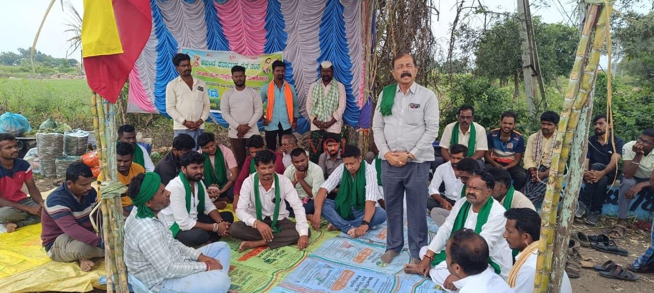 ಕಬ್ಬಿನ ಬೆಂಬಲ ಬೆಲೆ ಆಗ್ರಹಿಸಿ ರೈತರ ಅಹೋರಾತ್ರಿ ಧರಣಿ  ಸತ್ಯಾಗ್ರಹ