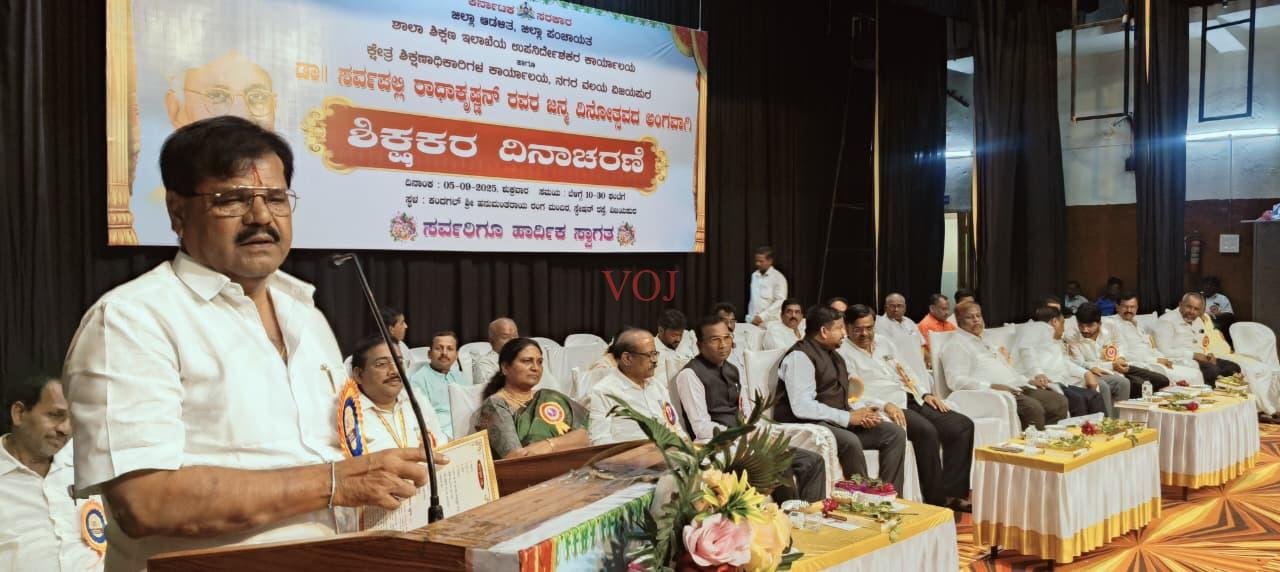 ನಗರದ ಕಂದಗಲ್ ಶ್ರೀ ಹನುಮಂತರಾಯ ರಂಗ ಮಂದಿರದಲ್ಲಿ ಜಿಲ್ಲಾಡಳಿತ, ಜಿಲ್ಲಾ ಪಂಚಾಯತ್, ಶಾಲಾ ಶಿಕ್ಷಣ ಇಲಾಖೆಯ ಉಪ ನಿರ್ದೇಶಕರ ಕಾರ್ಯಾಲಯ ಹಾಗೂ ನಗರ ವಲಯ ವಿಜಯಪುರ ಕ್ಷೇತ್ರ ಶಿಕ್ಷಣಾಧಿಕಾರಿಗಳ ಕಾರ್ಯಾಲಯ ಇವರ ಸಹಯೋಗದಲ್ಲಿ ಡಾ. ಸರ್ವಪಲ್ಲಿ ರಾಧಾಕೃಷ್ಣನ್ ಅವರ ಜನ್ಮ ದಿನಾಚರಣೆ ಪ್ರಯುಕ್ತ ಹಮ್ಮಿಕೊಂಡ ಶಿಕ್ಷಕರ ದಿನಾಚರಣೆ ಕಾರ್ಯಕ್ರಮಕ್ಕೆ ಚಾಲನೆ ನೀಡಿ ಅವರು ಮಾತನಾಡಿದರು.
