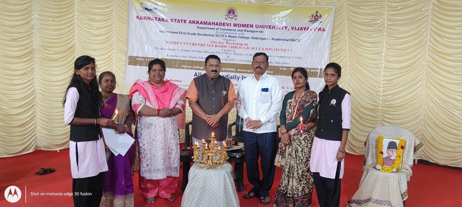 ನಗರದ ಕರ್ನಾಟಕ ರಾಜ್ಯ ಅಕ್ಕಮಹಾದೇವಿ ಮಹಿಳಾ ವಿಶ್ವವಿದ್ಯಾಲಯದ ವಾಣಿಜ್ಯ ಮತ್ತು ವ್ಯವಹಾರ ಅಧ್ಯಯನ ವಿಭಾಗ ಹಾಗೂ ಮುದ್ದೇಬಿಹಾಳದ ಸರ್ಕಾರಿ ಪ್ರಥಮ ದರ್ಜೆ ವಸತಿ ಎಸ್ಸಿ/ಎಸ್ಟಿ ಮಾದರಿ ಕಾಲೇಜು ಹಾದಲಗೆರಿ, ಭಾರತ ಸರ್ಕಾರದ ಉನ್ನತ ಶಿಕ್ಷಣ ಸಚಿವಾಲಯದ ಪ್ರಧಾನ ಮಂತ್ರಿ ಉಚ್ಚತರ ಶಿಕ್ಷಾ ಅಭಿಯಾನ ಪಿಎಂ-ಉಷಾ ಮತ್ತು ಕರ್ನಾಟಕ ಸರ್ಕಾರದ ಉನ್ನತ ಶಿಕ್ಷಣ ಪರಿಷತ್ತಿನ ಅಡಿಯಲ್ಲಿ ಮಂಗಳವಾರ ಮುದ್ದೇಬಿಹಾಳದಲ್ಲಿ ಹಮ್ಮಿಕೊಂಡಿದ್ದ “ಸ್ವಯಂ ಉದ್ಯೋಗದ ಮೂಲಕ ಮಹಿಳಾ ಉದ್ಯಮಿತ್ವ” ವಿಷಯದ ಕುರಿತ ಒಂದು ದಿನದ ಕಾರ್ಯಾಗಾರವನ್ನು ಉದ್ಘಾಟಿಸಿ ಮಾತನಾಡಿದರು.